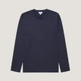 A long-sleeved version of the Riviera T-shirt, originally designed for Daniel Craig in Casino Royale. Crafted from luxurious midweight cotton, it offers a smooth, durable feel with a tailored fit and slightly heavier weight. The perfect versatile layer – wear it on its own or under a jacket for effortless, year-round style.