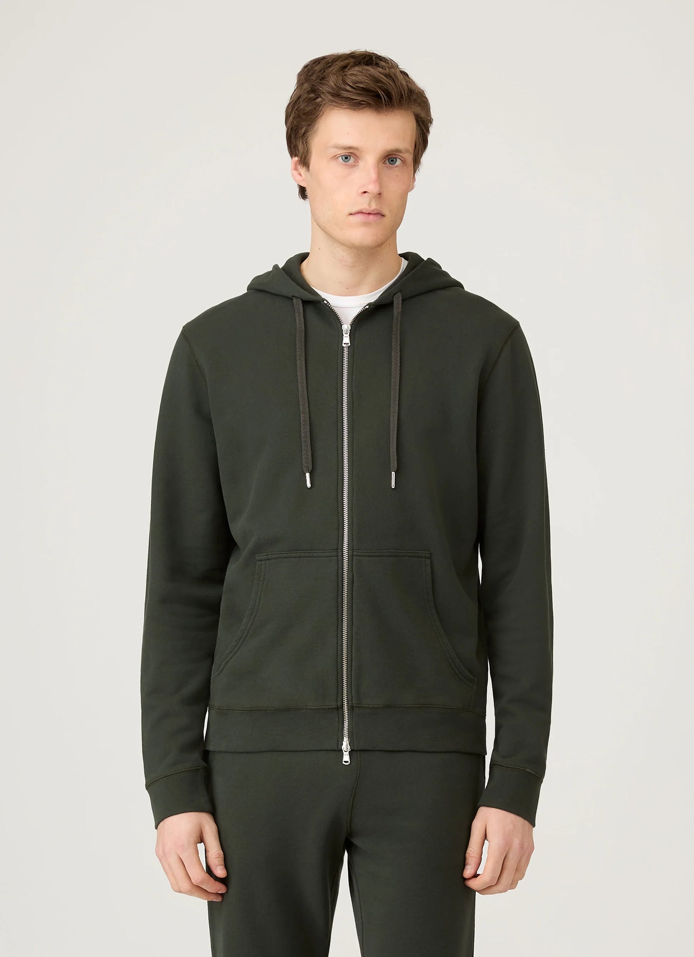 Loopback Zip Dark Green Hoodie