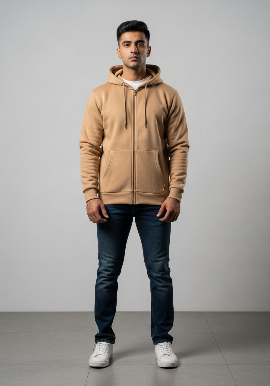 Beige Zipper Hoodie